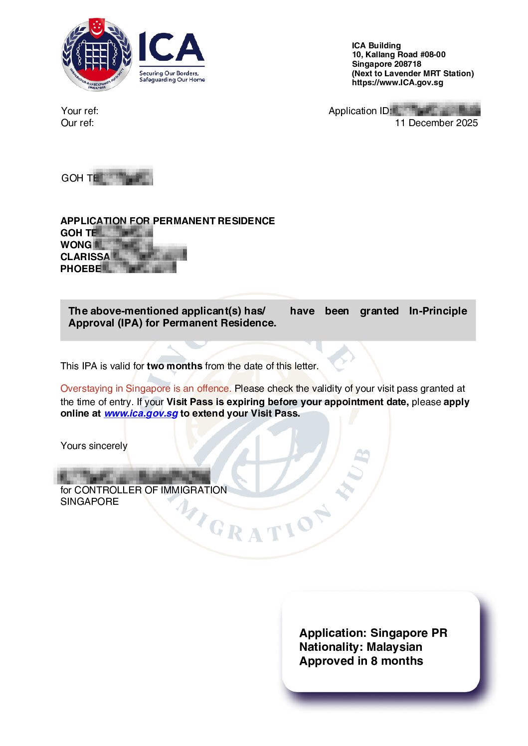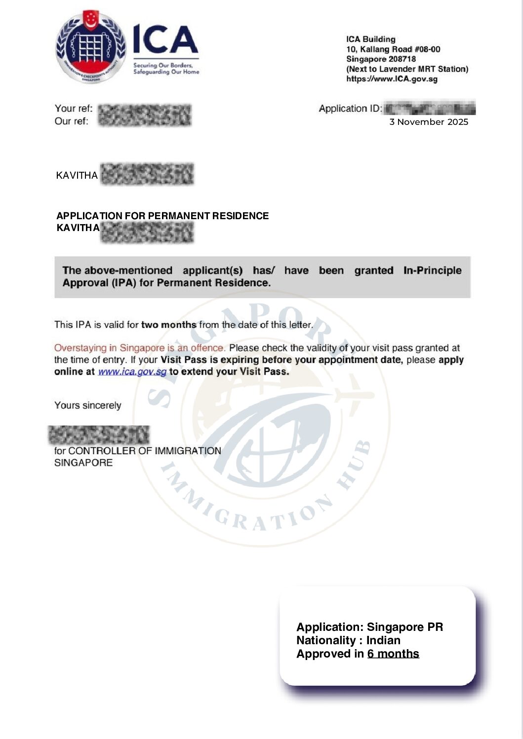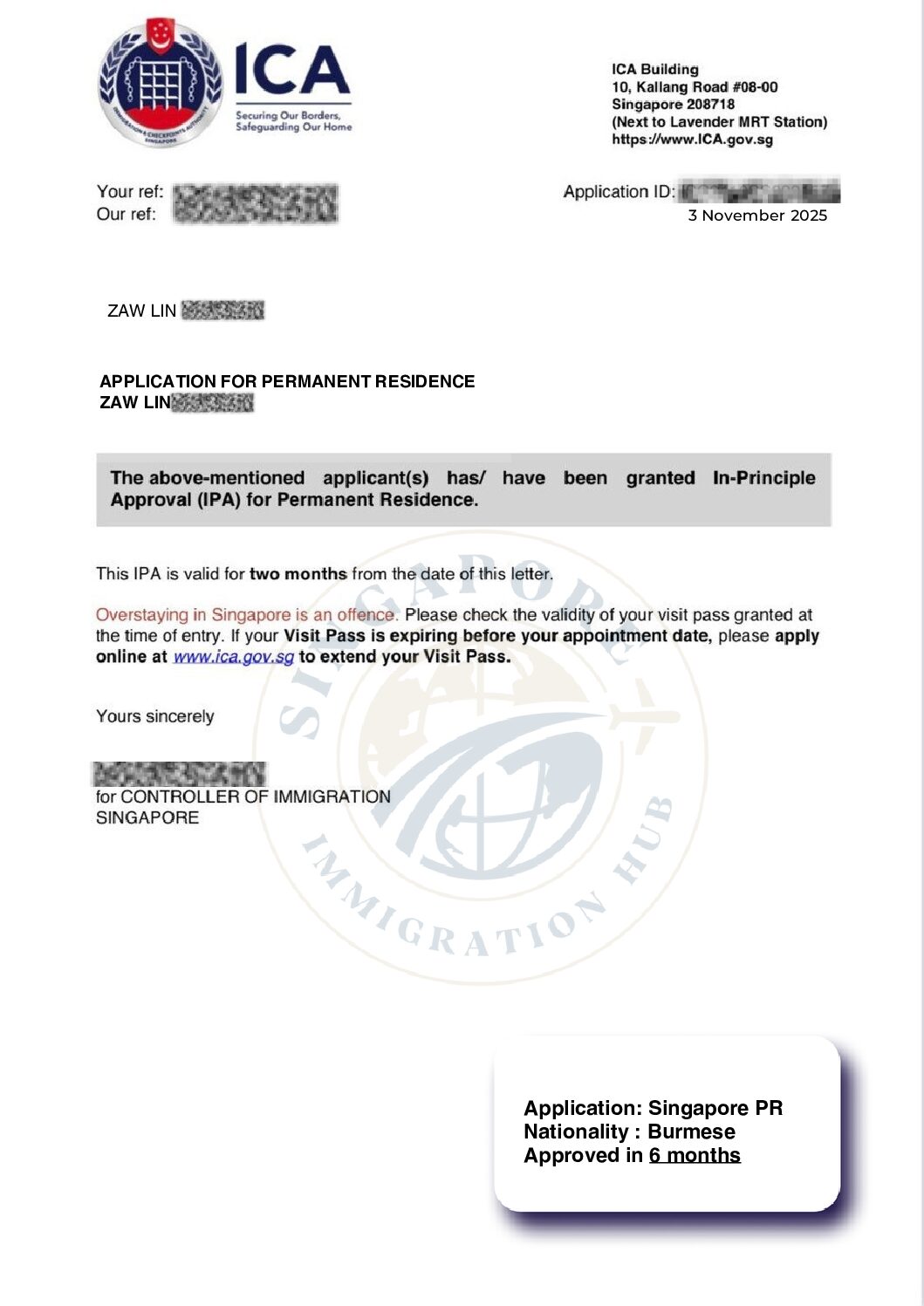 At Singapore Immigration Hub, our track record speaks for itself. We have helped numerous clients from all walks of life secure their Singapore Permanent Residency and Citizenship through strategic, well-prepared applications. Below is a showcase of real approval outcomes — each a testament to our team’s diligence, insight, and client-centric approach.
