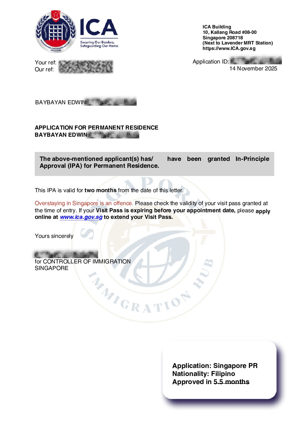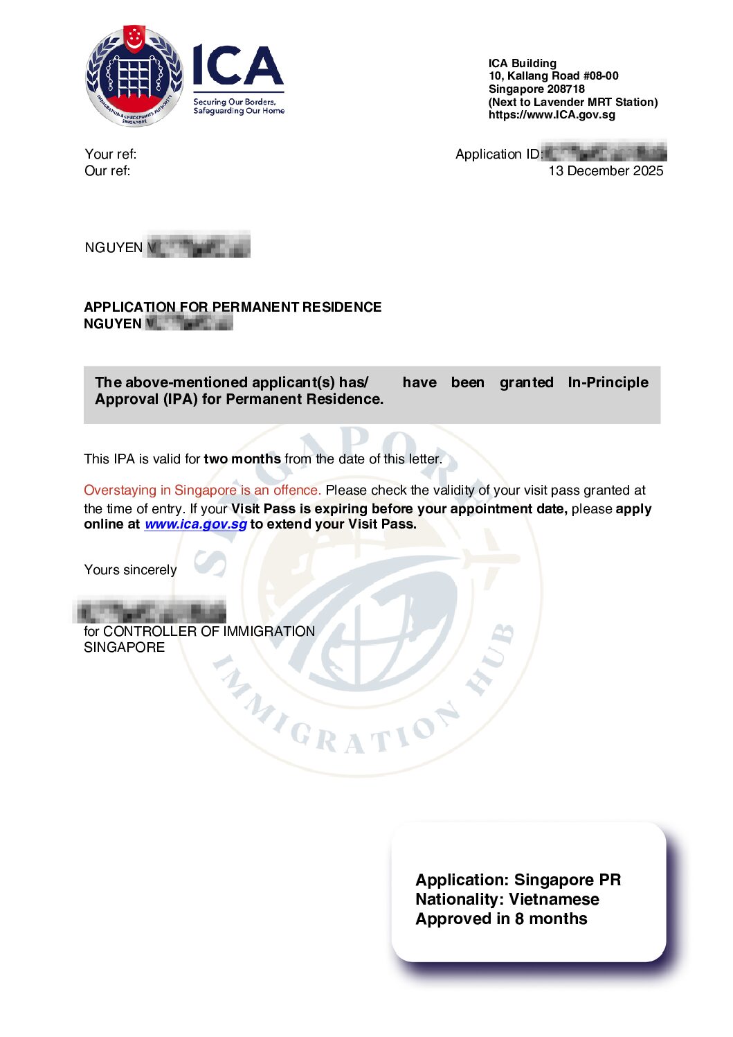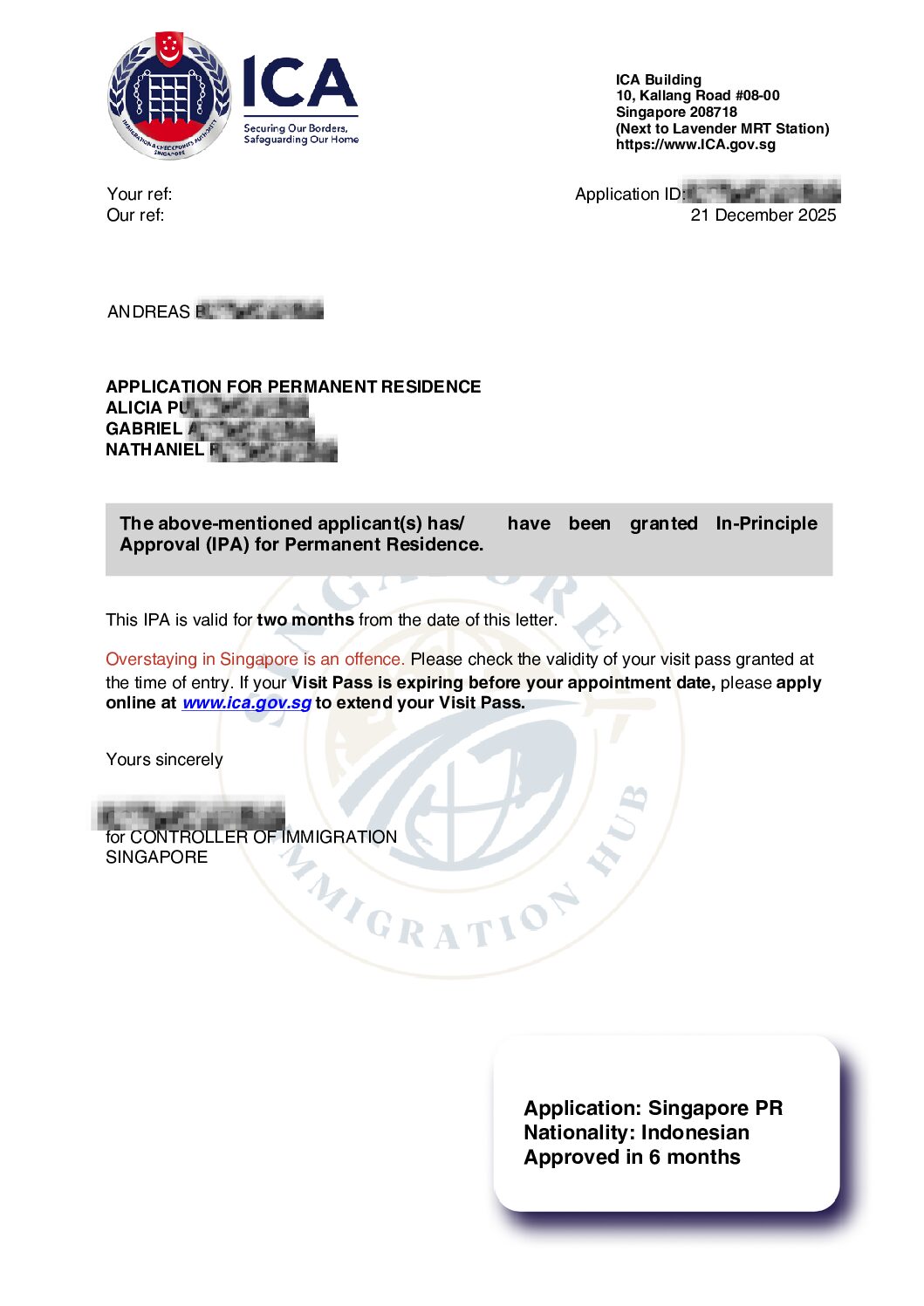 At Singapore Immigration Hub, our track record speaks for itself. We have helped numerous clients from all walks of life secure their Singapore Permanent Residency and Citizenship through strategic, well-prepared applications. Below is a showcase of real approval outcomes — each a testament to our team’s diligence, insight, and client-centric approach.