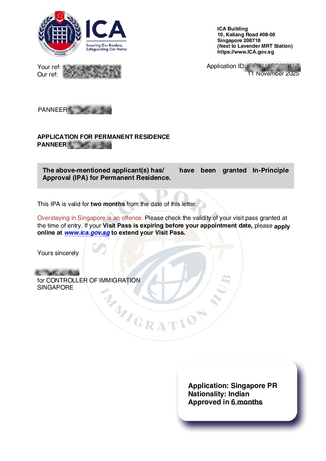 These documents represent authentic ICA approvals received by our clients. Whether through the PTS scheme, sponsorship, or citizenship applications, each case highlights a unique journey — and a successful outcome.